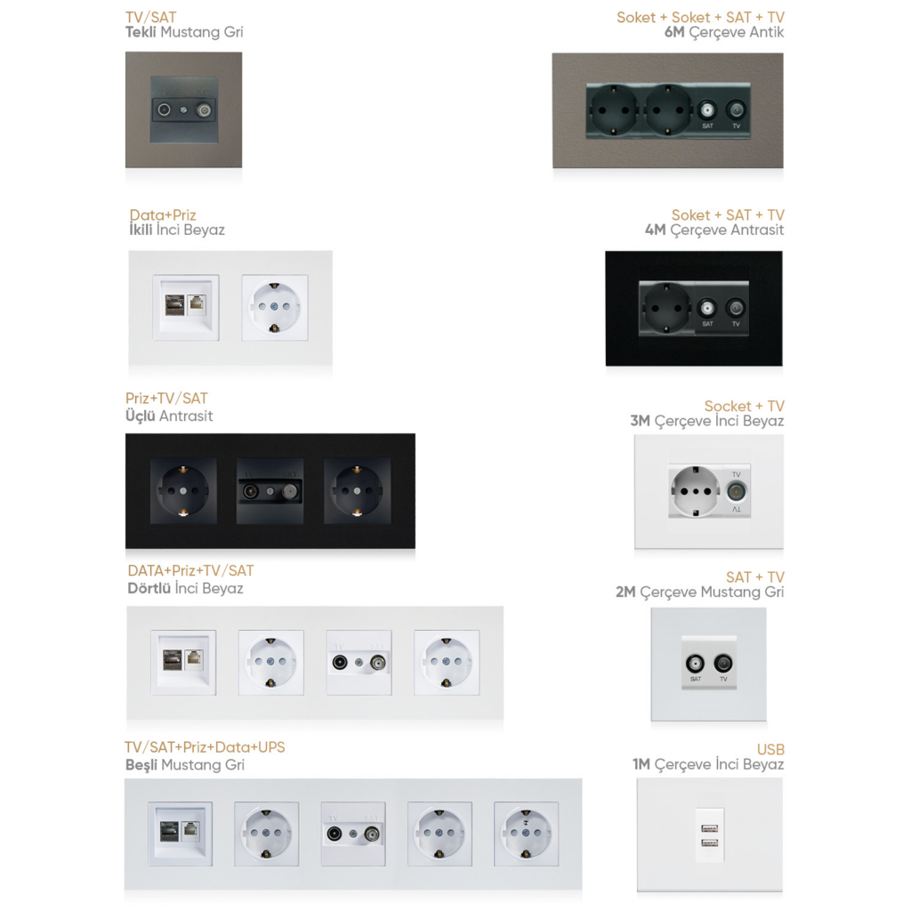 Termostatlar, anahtarlar ve prizlerle yüzlerce kombinasyon seçeneği vardır.