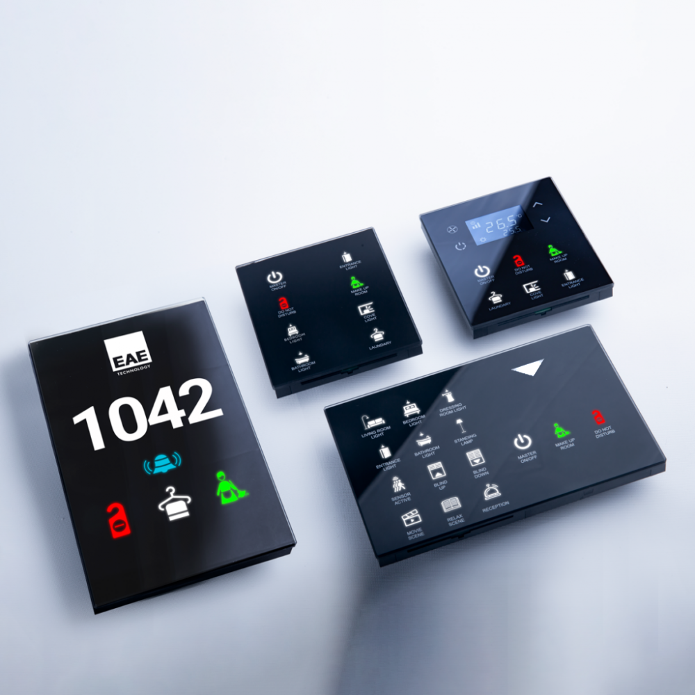 Anahtarları ve termostatları kart tutucunuzla birleştirebilirsiniz. Konuklar birçok şeyi tek bir monoblok panel üzerinden kontrol edecek.